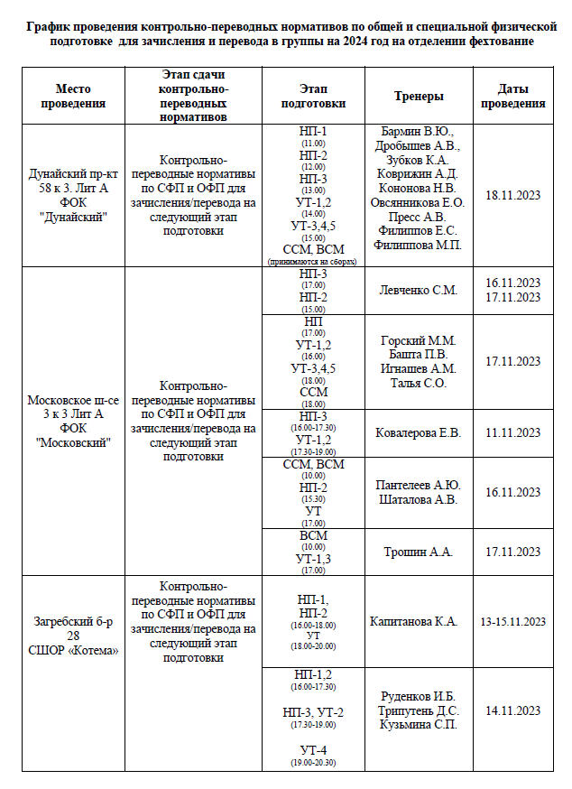 Итоговая аттестация обучающихся отделения фехтования для зачисления и перевода в группы на 2026 учебно-тренировочный год
