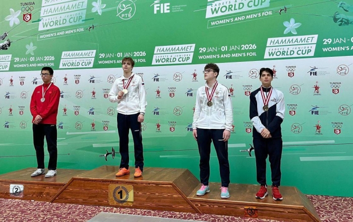 С 28.01.2026 по 02.02.2026 в г.Хаммамет (Тунисская Республика) проходит Международный турнир на рапирах "Сoupe du Monde" среди кадетов и юниоров (личные и командные соревнования). Результаты 2 дня соревнований обучающихся СШОР "Комета": Юноши, рапира лично Танчук Дмитрий - 3 место 🥉 Девушки, рапира лично Сафарян Александра - 6 место. Поздравляем старшего