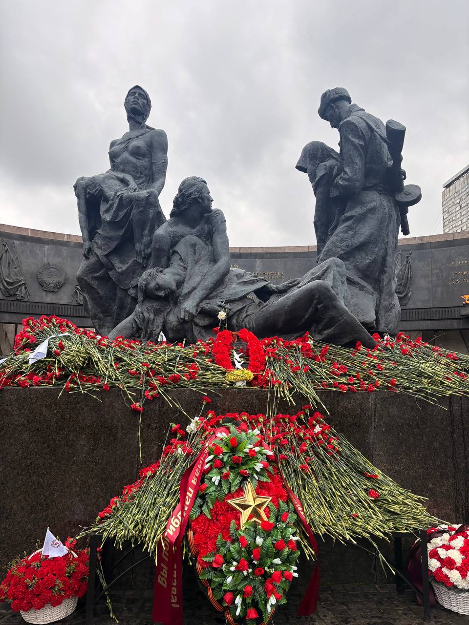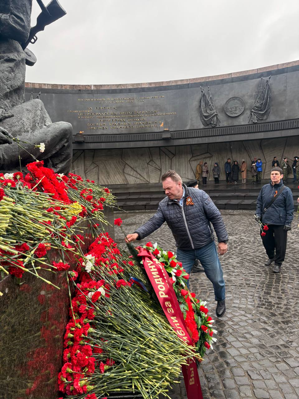 Сегодня на площади Победы состоялась памятная церемония, посвященная 80-летию Великой Победы. Директор Ариткулов Александр Хасанович и сотрудники СПб ГБУ ДО СШОР «Комета» возложили цветы к монументу героическим защитникам Ленинграда.
