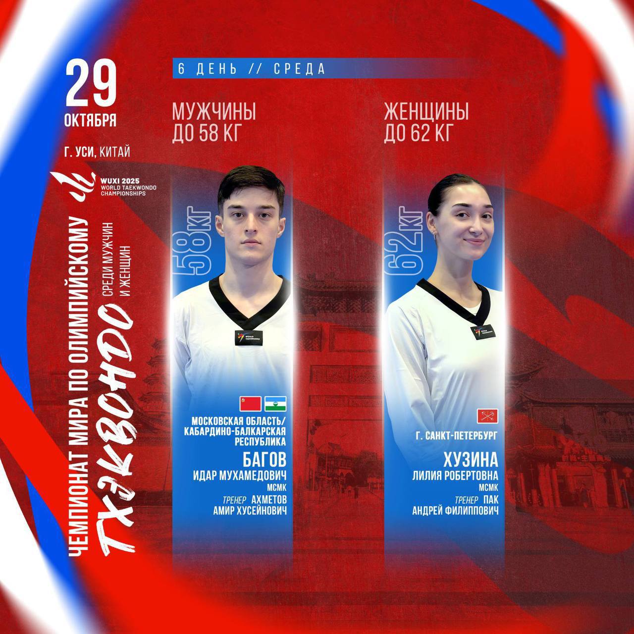 Завтра (29.10.2025) состоится 6 день Чемпионата Мира по тхэквондо (ВТФ) в г. Уси, Китай.