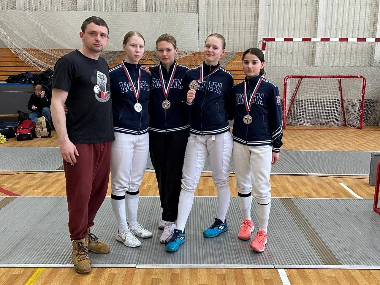 Результаты 6 дня соревнований спортсменов СШОР Комета девушки (рапира командные): Петрова Е., Королева А., Деликамова М., Сафарян А. — 2 место