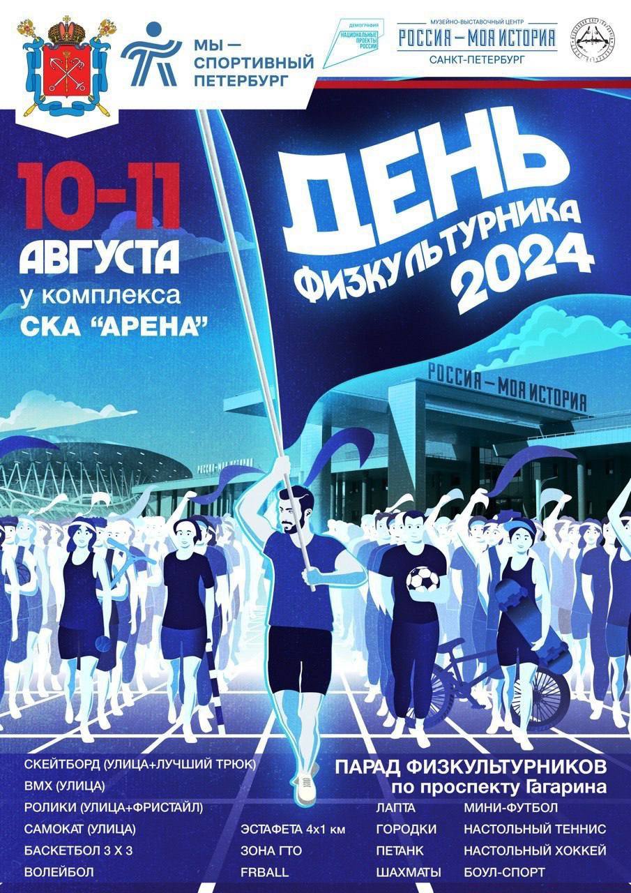 10 и 11 августа на территории между СКА Ареной и выставкой «Мой Петербург» (Бассейная ул., 32), состоится грандиозный мультиспортивный фестиваль «День физкультурника».