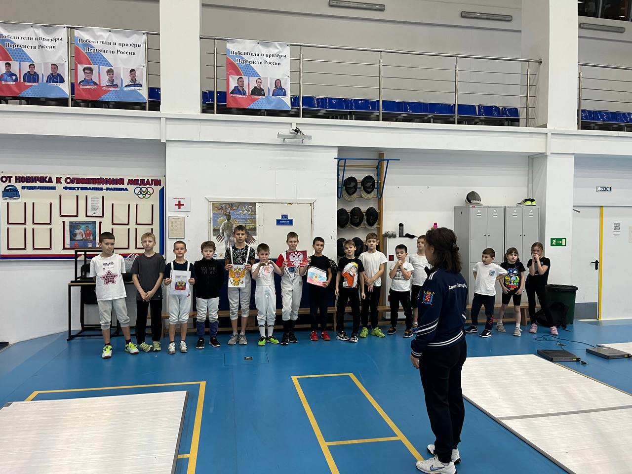 на отделении фехтования (рапира) тренеры-преподаватели: Кононова Н.В., Овсянникова Е.О.рассказали обучающимся группы начальной подготовки что представляет собой изображение золотого двуглавого орла на красном щите.