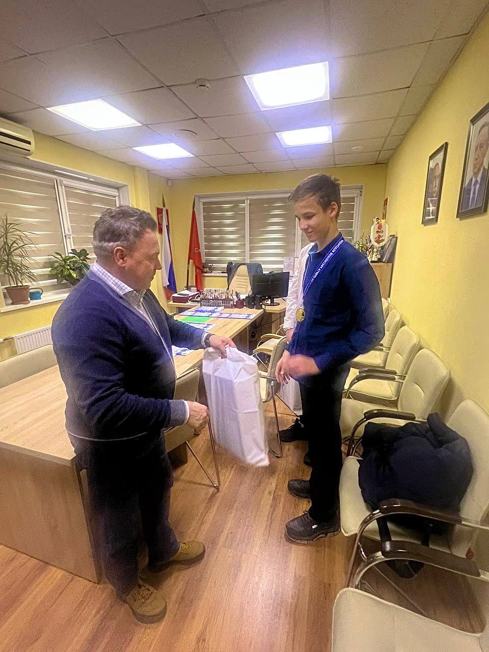Директор вручил подарки Букевичу Дмитрию и Танчуку Дмитрию и пожелал спортсменам дальнейших успехов и самых высоких наград различного уровня!