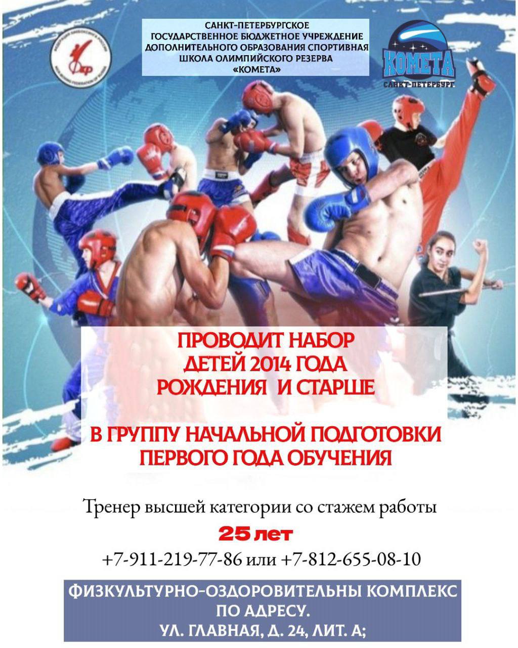 Спортивная школа олимпийского резерва «Комета» проводит дополнительный просмотр мальчиков с 10 лет на отделение кикбоксинга.