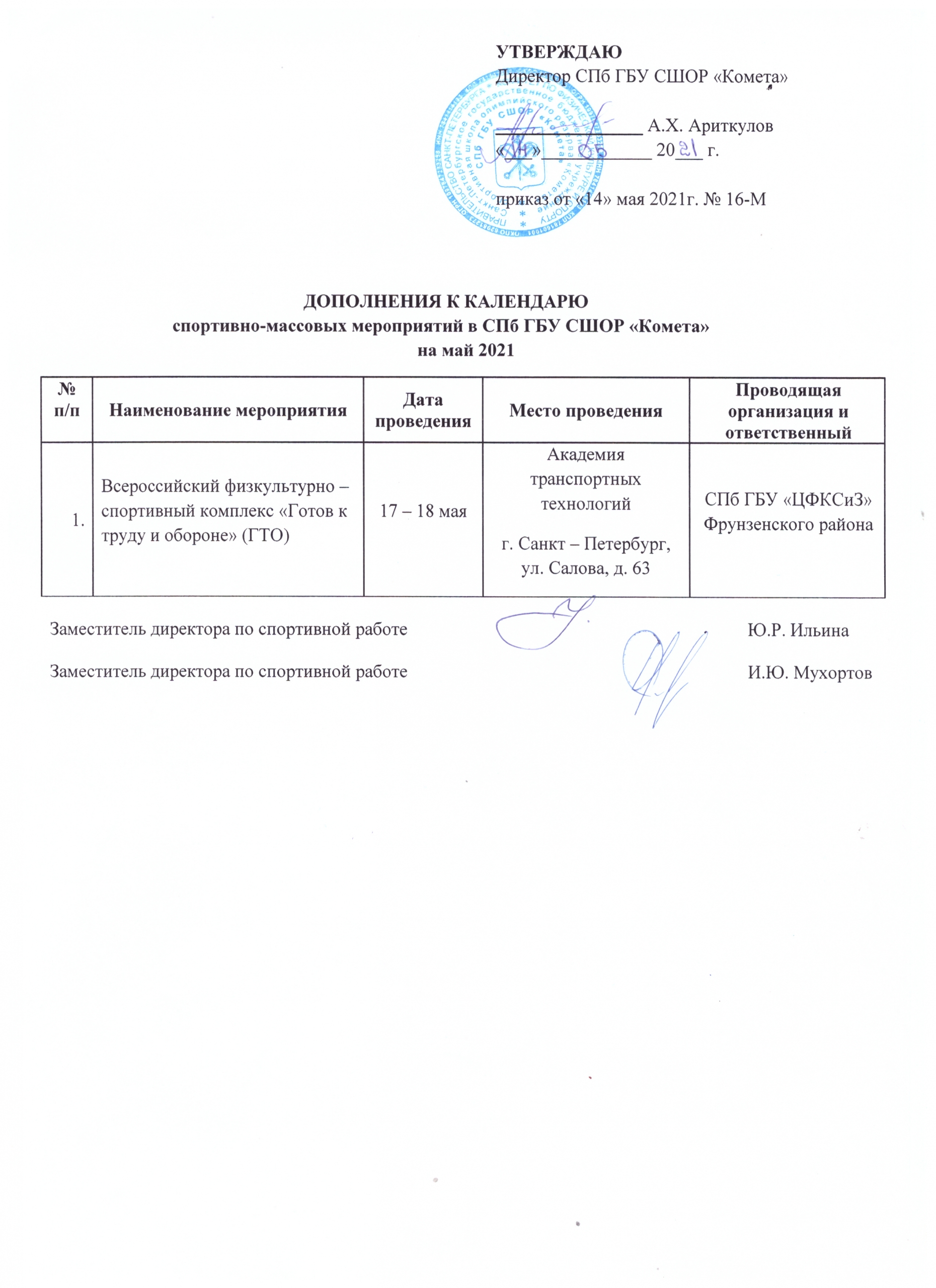 - Дополнения к плану спортивно-массовых мероприятий на май 2021