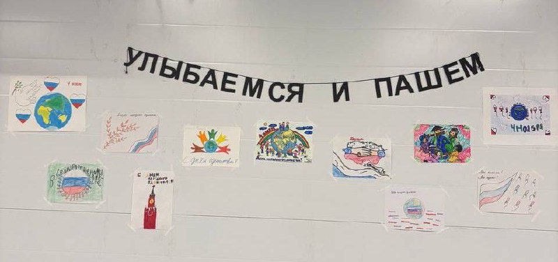 Обучающиеся подготовили тематические рисунки и украсили спортивный зал к празднику.