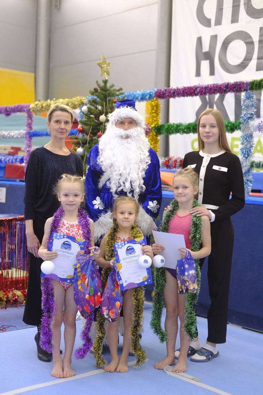 На турнире вручались значки спортивных разрядов, сладкими призами были отмечены спортсменки, которые выступали и защищали честь школы на выездных соревнованиях в уходящем году Все гимнастки турнира были награждены сертификатом участника, памятными новогодними шарами и ёлочными украшениями, а награждение участников проводил Дед Мороз!