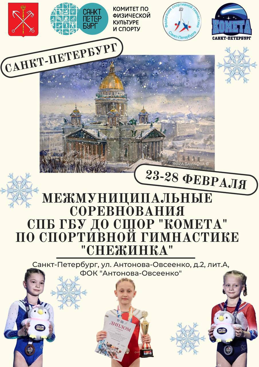В Санкт-Петербурге с 24 по 27 февраля Межмуниципальные соревнования СПб ГБУ ДО СШОР «Комета» по спортивной гимнастке «Снежинка».
