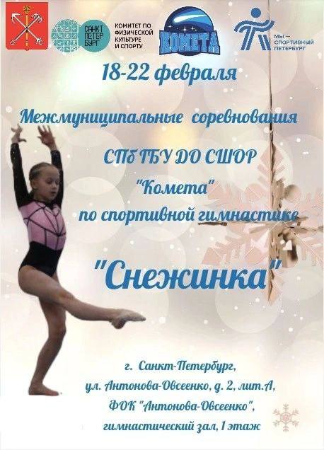 С 18 по 22 февраля на базе ФОК «Антонова-Овсеенко» состоятся Межмуниципальные соревнования СПб ГБУ ДО СШОР «Комета» – «Снежинка» по спортивной гимнастике.