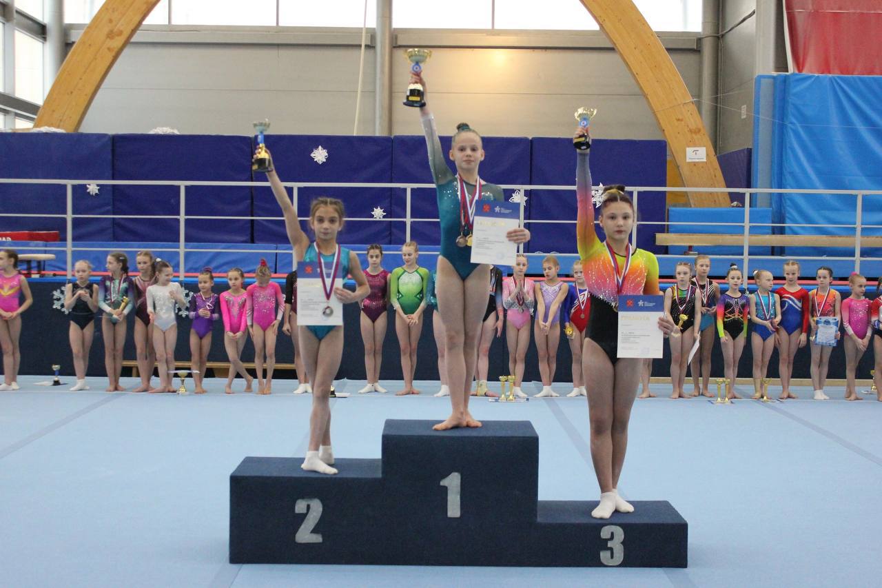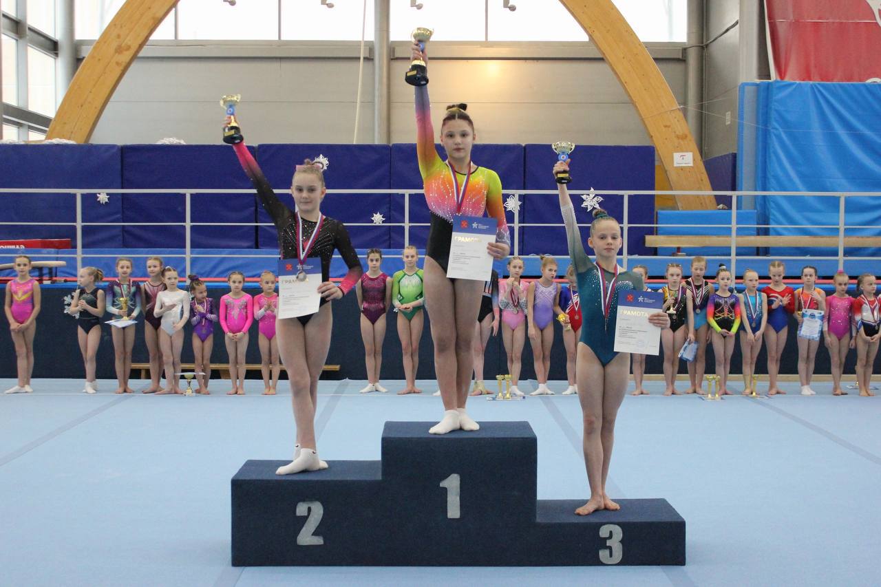 Полянская Алиса дважды поднималась на пьедестал в финальных соревнованиях: 1 место опорный прыжок 3 место брусья