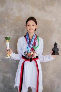 Бронзовый призер Первенства России среди юношей и девушек (12-14 лет) 2024 года (г. Рязань); бронзовый призер Первенства Мира по тхэквондо ВТФ среди кадетов юношей и девушек (12-14 лет) 2025 года (г. Фуйджера, ОАЭ); победительница Первенства России среди юношей и девушек (12-14 лет) 2025 года г. Люберцы (Московская область).