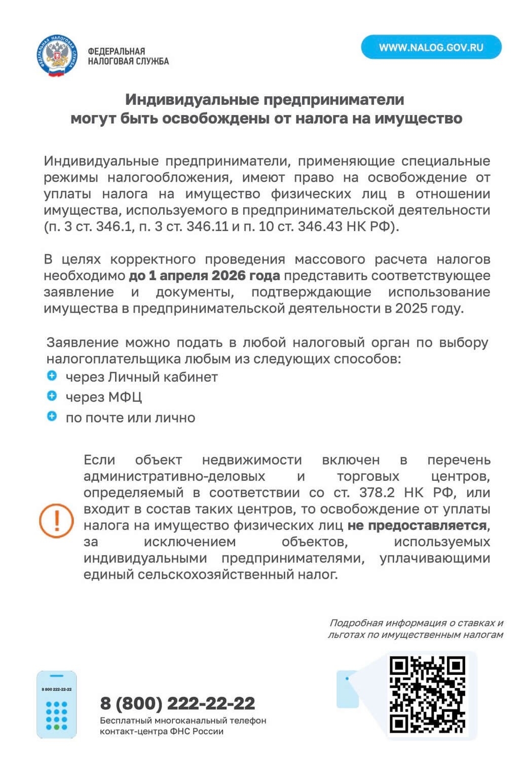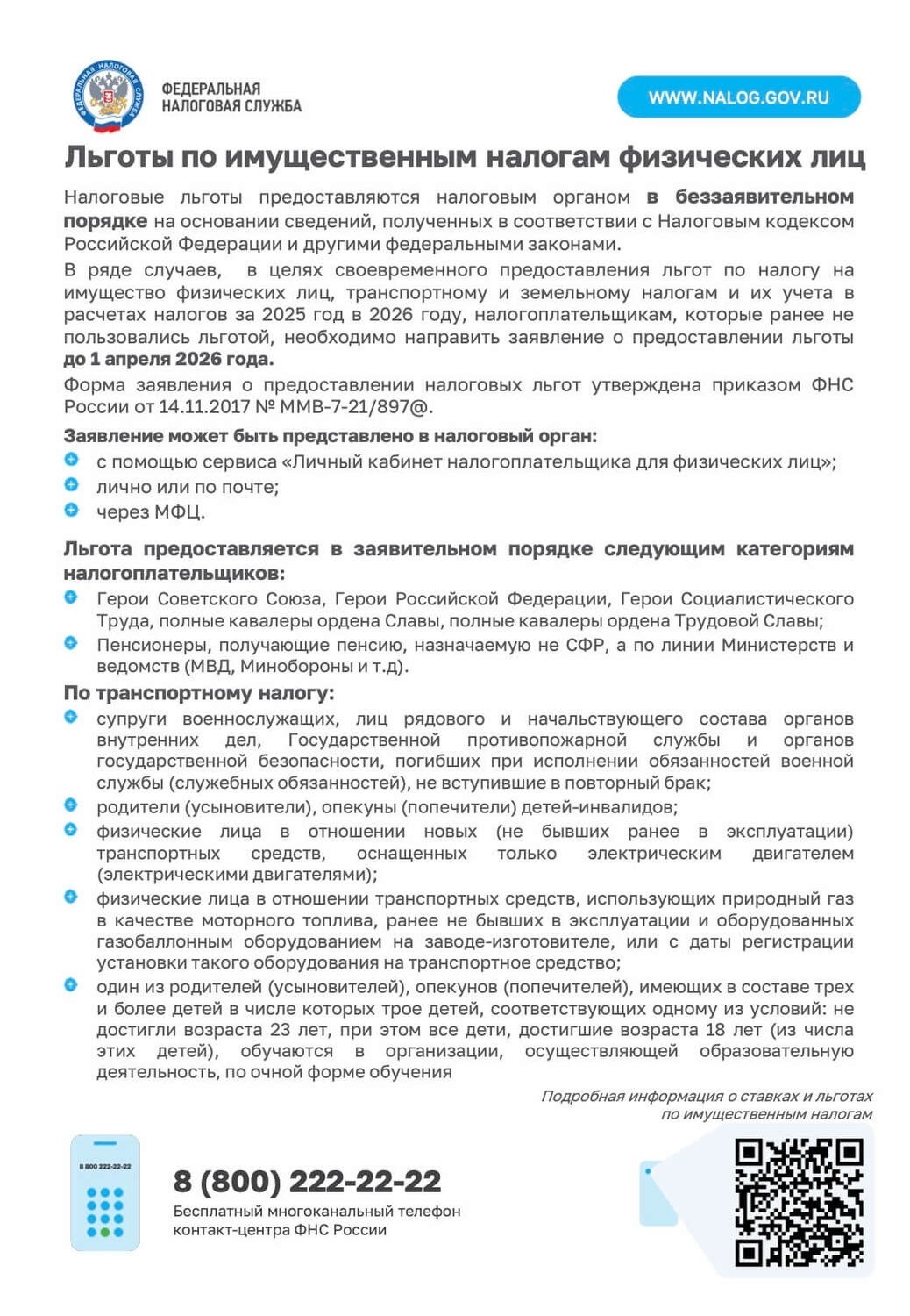 Льготы носят заявительный характер, и срок подачи документов истекает 1 апреля 2026 года.