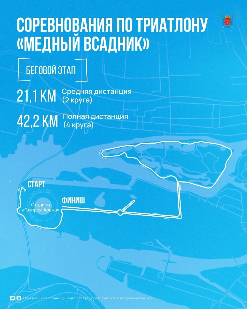 Велосипедный этап пройдёт по Западному скоростному диаметру, а беговой — в Приморском парке Победы и ЦПКиО им. С.М. Кирова.
