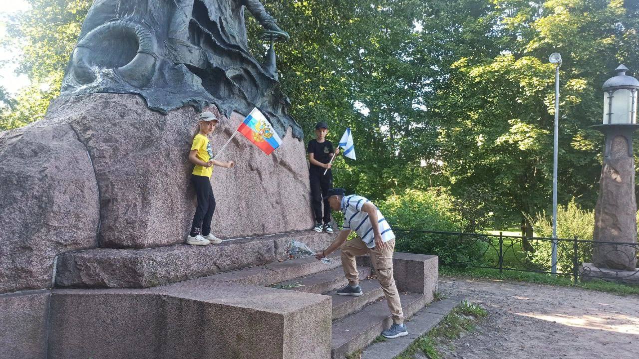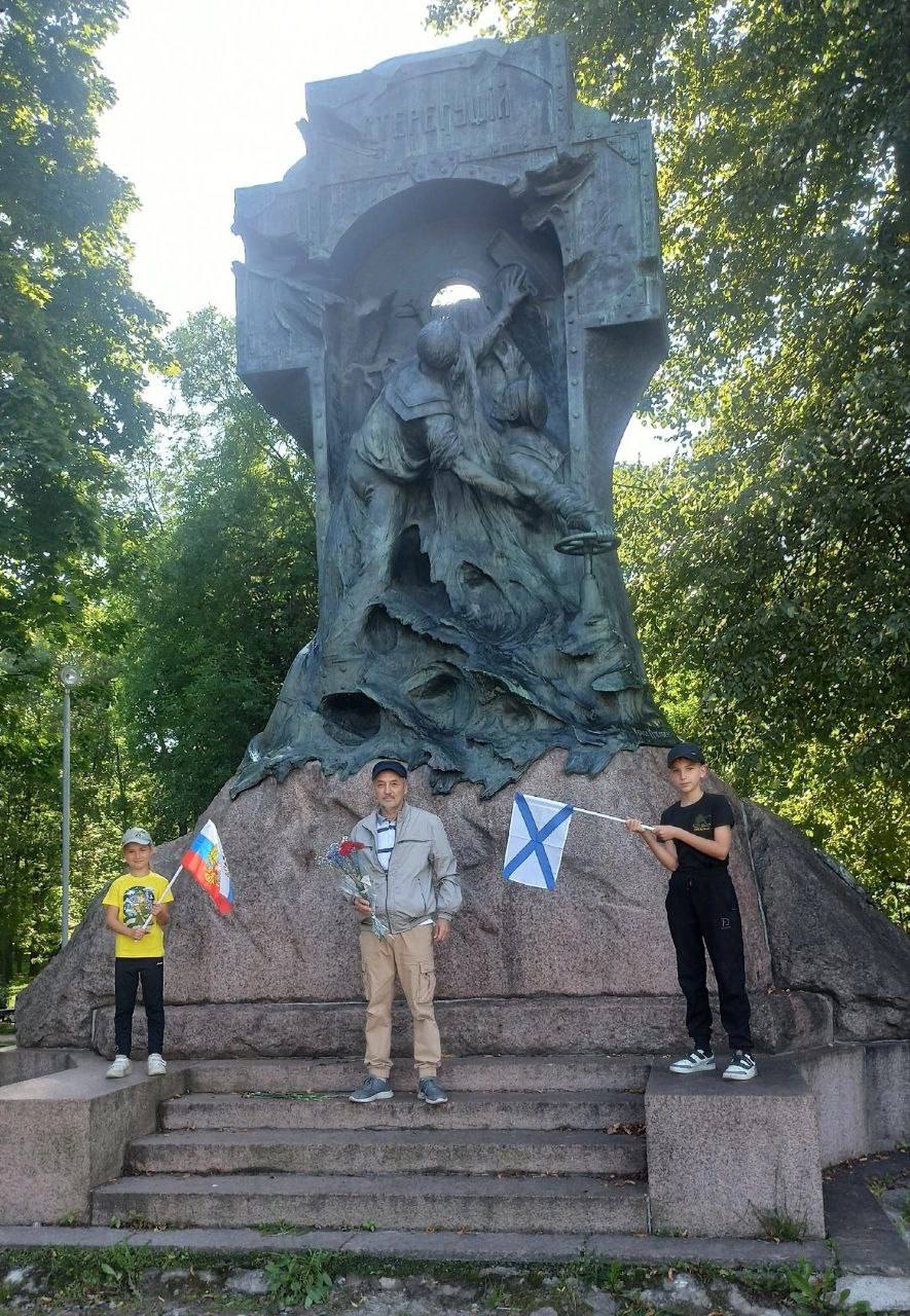 Торжественное возложение цветов и закрепление флагов (Российского государственного и Андреевского военно-морского) к Памятнику погибшим русским морякам миноносца «Стерегущий» во время неравного боя с японской эскадрой (русско-японская война 1904-05 г.г.) с честью выполнившими свой долг перед Родиной.
