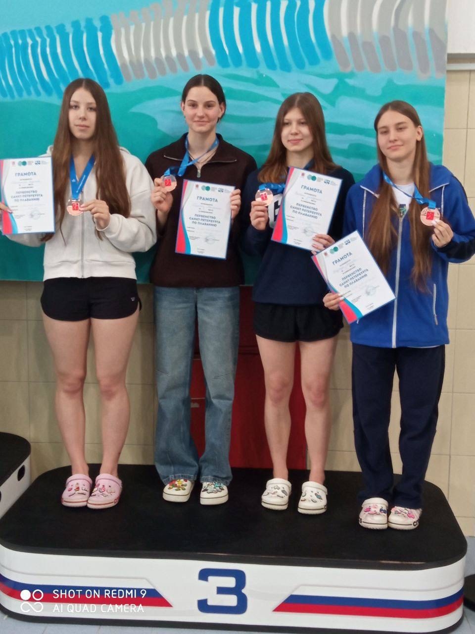 3 место в эстафете 4х100 м вольный стиль, в составе: Слободянюк Варвара, Андреева Маргарита, Мищерина Евдокия, Андреева Надежда