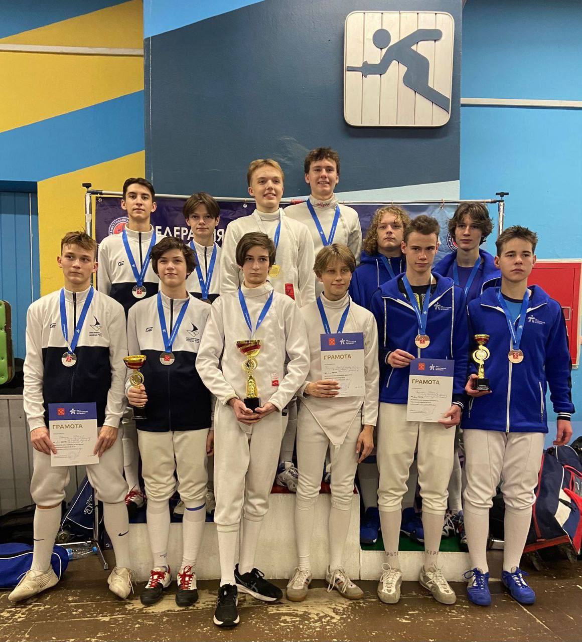 Юноши, сабля командные — Дмитриев Максим, Петров Иван, Хрисанов Александр, Сергеев Всеволод — 3 место (Старший тренер-преподаватель Пантелеев А.Ю., тренеры-преподаватели Игнашев А.М., Шаталова А.В.)
