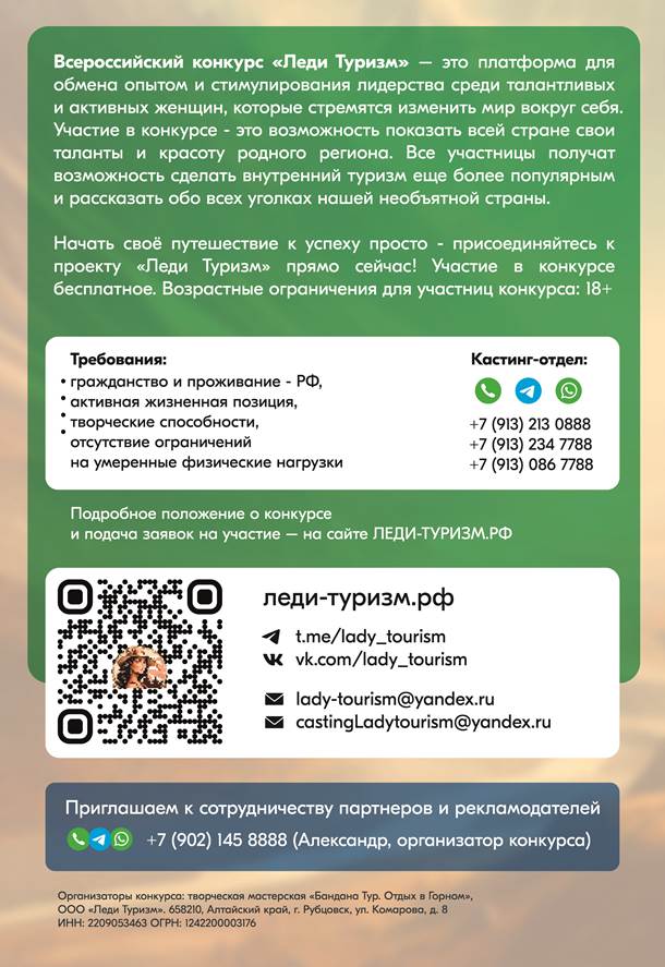Первый Всероссийский Конкурс таланта, творчества и региональных достопримечательностей «Леди Туризм». Сезон 2024 «Алтайский актив»