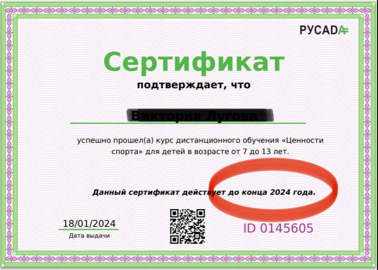 Для продления сертификатов РУСАДА на 2024 год необходимо пройти тестирование на сайте: Для курса «Ценности спорта» необходимо ответить на 8 вопросов.