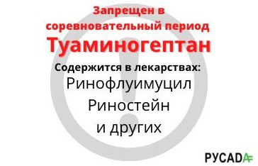 Например, запрещенный в соревновательный период туаминогептан входит в состав таких популярных назальных спреев, как Ринофлуимуцил и Риностейн. Следовательно, использование этих спреев может привести к нарушению антидопинговых правил.