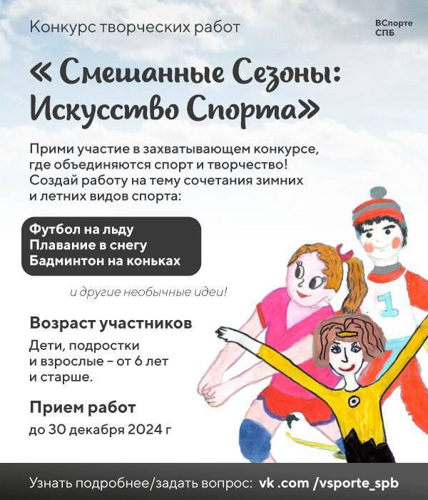2️ Отправь фотоработу и заявку на vsportespb@yandex.ru с пометкой «Смешанные сезоны: Искусство спорта».