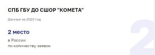 СПб ГБУ ДО СШОР «Комета» заняла 2 место по России за 2023 год по количеству поданных электронных заявлений на запись ребенка в спортивную школу через «ГОСУСЛУГИ» в Федеральной государственной информационной системе «Единая цифровая платформа «Физическая культура и спорт» ! 👏👏👏