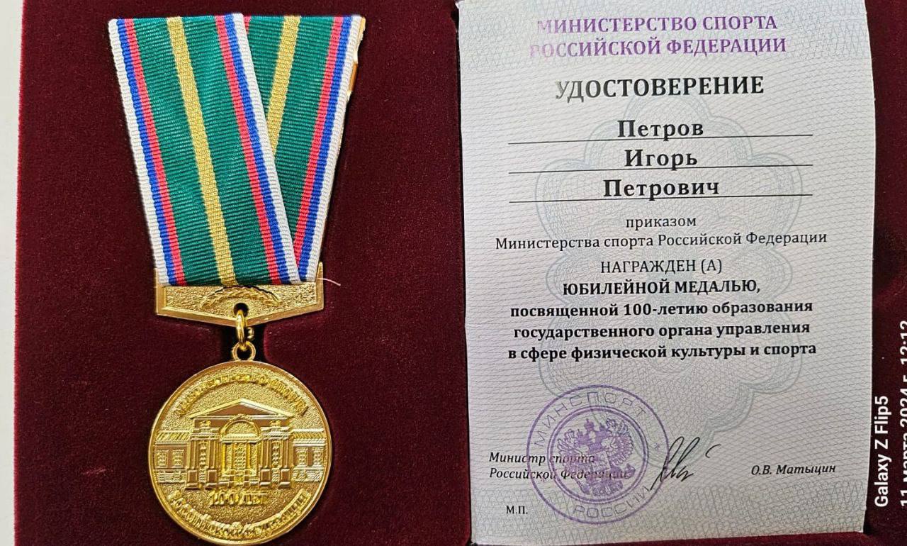 В 2023 году в перечень ведомственных наград Минспорта включена медаль, посвященная 100-летию образования госоргана управления в сфере физической культуры и спорта. Данной медалью награждаются работники в области физической культуры и спорта-выдающиеся деятели, внесшие существенный вклад в развитие отрасли.