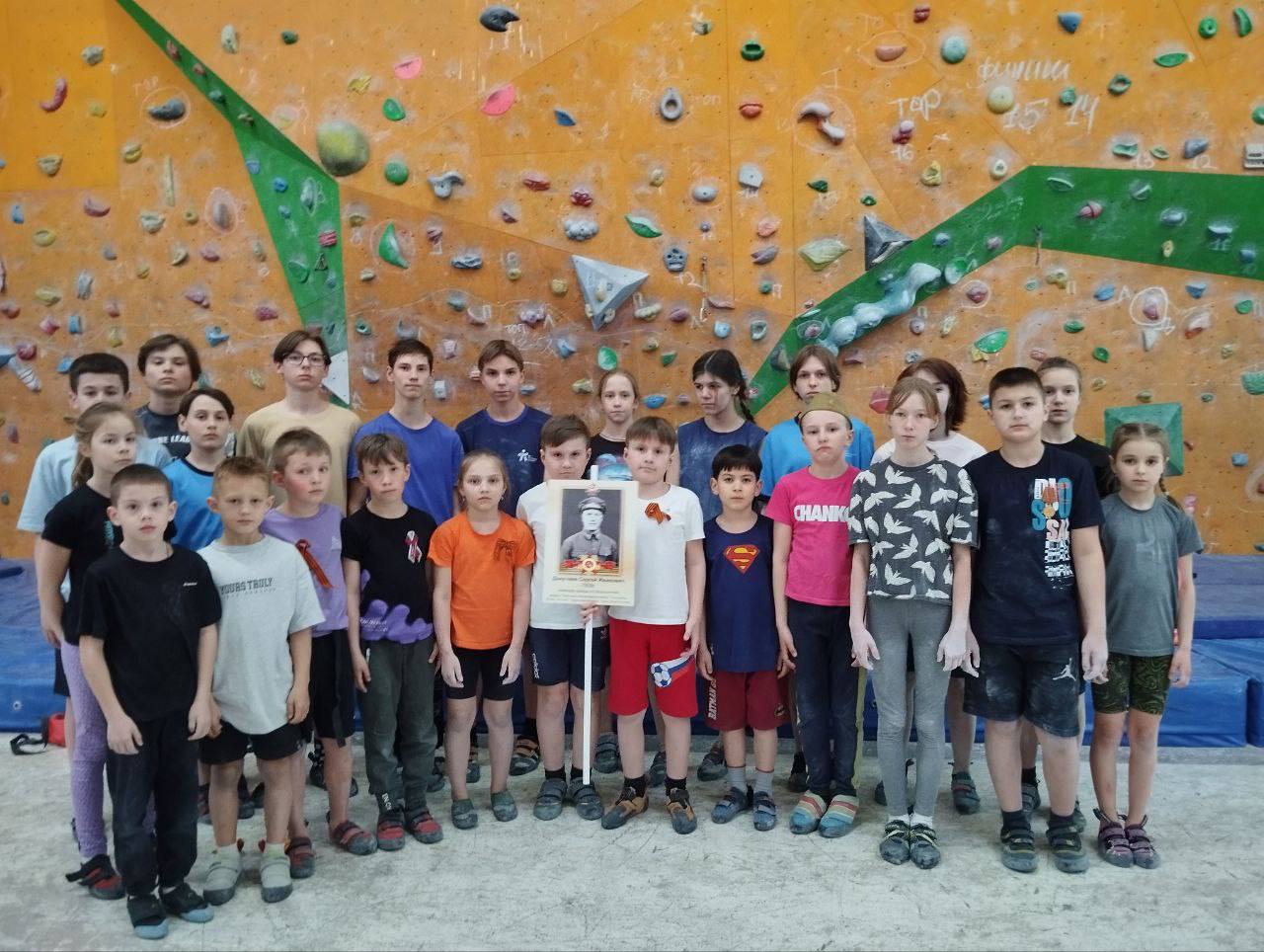 В преддверии празднования 80-летия победы в Великой Отечественной войне 5 мая на отделении скалолазания провели патриотический урок. На котором обучающиеся рассказывали стихи о Великой победе.Каменковы Ярослав и Влад поделились с ребятами историей подвига своего прадедушки Докучаева Сергея Ивановича(1908-1981). Во время ВОВ воевал в партизанском отряде имени Ворошилова в Белоруссии. Был командиром взвода в звании старший сержант. Под его командованием взвод участвовал при разгроме вражеских гарнизонов, подрыве двух железнодорожных эшелонов, 16 фашистских автомобилей, уничтожении 5 км вражеской линии связи. Участвовал в подрыве 7 мостов, по которым фашисты везли военную технику.