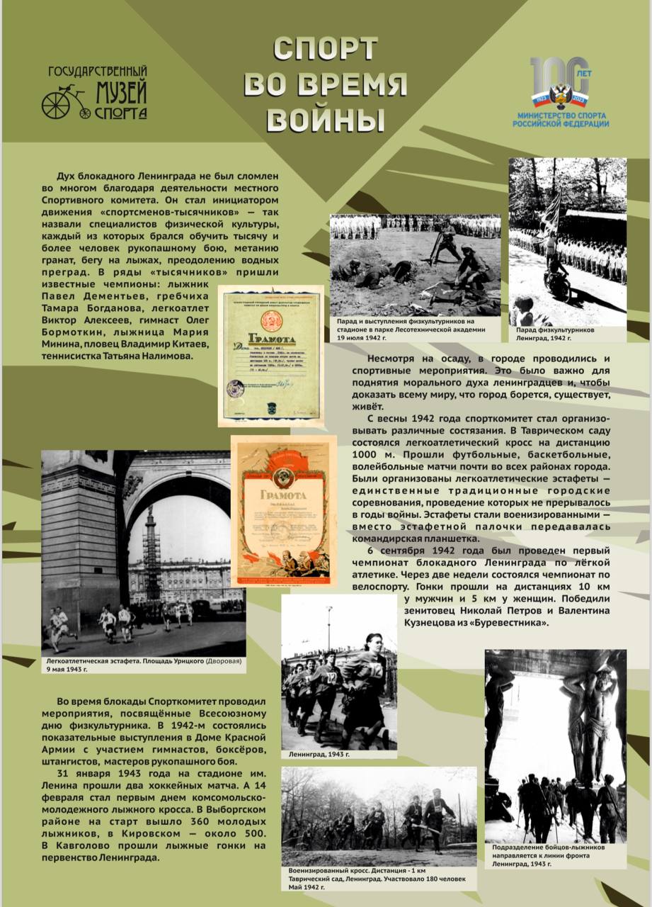 Министерством спорта Российской Федерации совместно с Государственным музеем спорта и Международным фестивалем спортивного кино «Красногорский» проводится Всероссийская патриотическая акция «Герои спорта – Герои страны», приуроченная к 80-летию с момента полного снятия блокады Ленинграда .