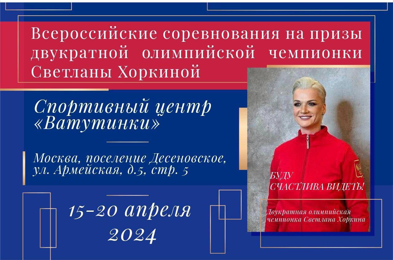 С 15 по 20 апреля в Москве (п. Ватутинки) будут проходить Всероссийские спортивные соревнования «На призы двукратной Олимпийской чемпионки С. Хоркиной» по спортивной гимнастике.